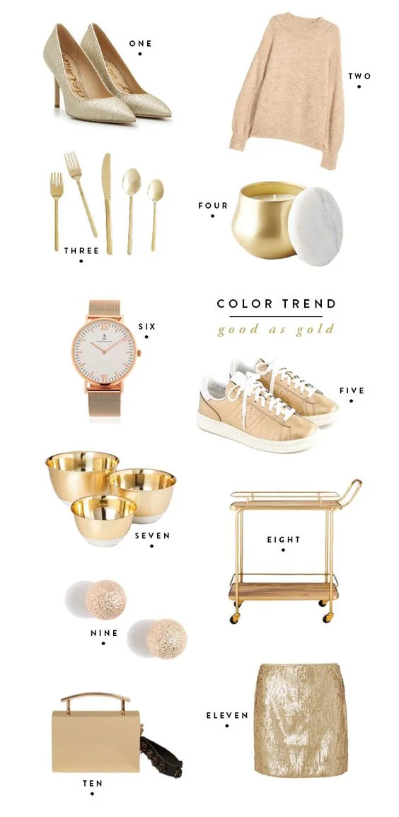 Everyone knows I have a long running obsession with rose gold. I think if its copper, rose gold, or marble I instantly want it. But there's one shimmery, metallic that everyone can get behind: Gold. I do love gold whether its simple like a sweater or cute like sprinkles on Christmas cookies. Whether it's being worn or just around the house, gold adds a little bit of excitement to everything.