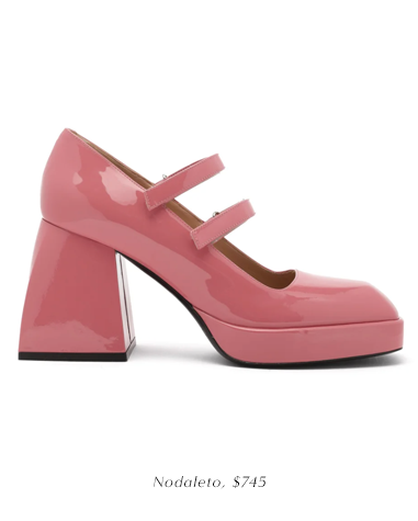 Cool heels is a pretty broad trend that, to me, encompasses everything from bright colors to unique styles. The heel itself can be the cool part as many of the runways had out of the box heels like nail polish containers. These cool heels elevate an outfit and even just make a statement all on their own.