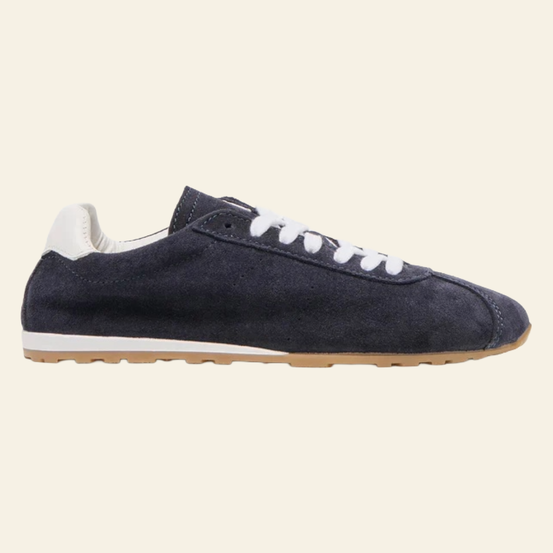Suede is another trend moving up the ranks this fall, and it adds mood without shouting it. Its texture softens denim or structured trousers, and brings warmth to colder days without relying on obvious “fall colors.” Suede sneakers come in so many different shades, so they feel elegant and not just seasonal. Suede can feel risky in the fall with the influx of different types of weather, so just remember, suede will always breathe a little. Rotate the sneakers throughout the season, possibly skip them if rain is in the forecast, or always have a backup.