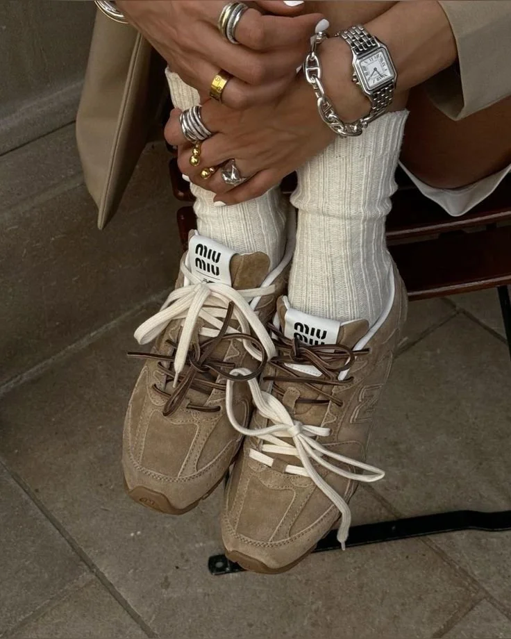 This one certainly isn’t new, but it remains one of my favorites. Sporty sneakers are where function meets fashion. They are designed for movement, performance, and pushing boundaries. These days, the versions getting the most mileage are refined with curved panels, tonal branding, and breathable mesh overlaid with a sleek design. Sporty sneakers fit the bill for running errands to walking the city to just simply commuting. Pair them with tailored joggers, relaxed trousers, or even a midi skirt for a kind of sporty look.