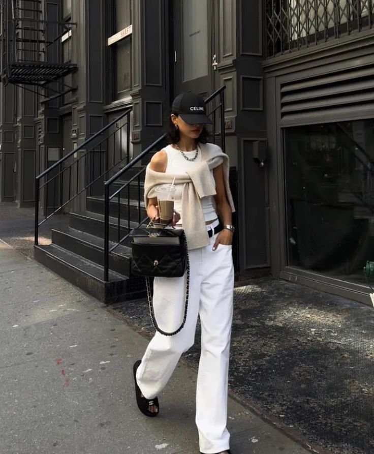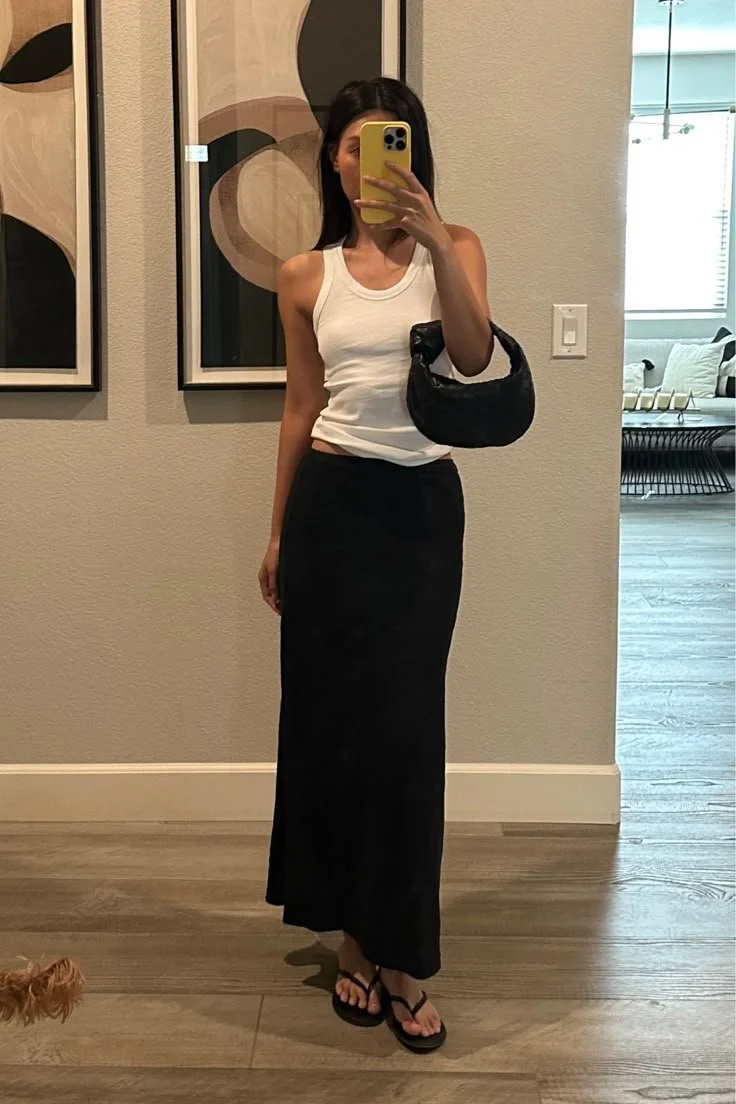 If the ‘90s had an official uniform, white tank tops would probably be it. Crips, ribbed, and form-fitting, it’s the ultimate blank slate. Pair it with straight jeans, a leather jacket, or a tailored maxi skirt - it always works. The beauty of the white tank lies in the simplicity. A tank fits well instantly and feels polished without trying.