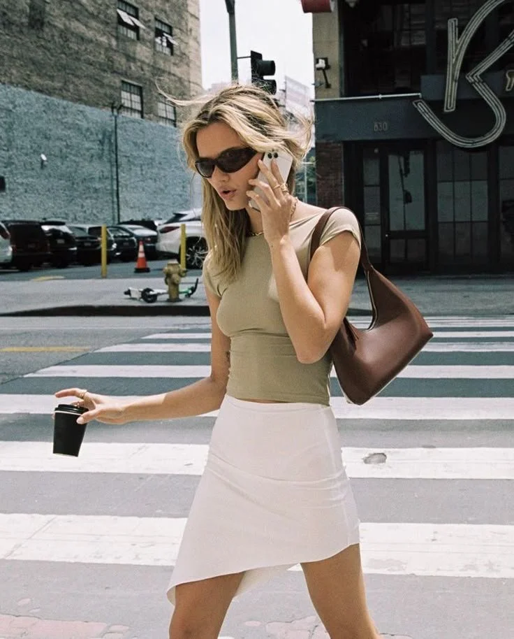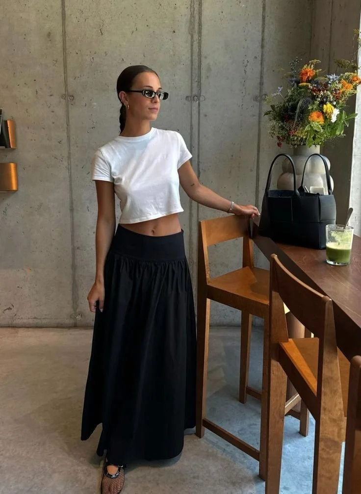 Minimalist skirts of the ‘90s came in clean shapes: slip skirts, straight midi skirts, column silhouettes. No ruffles, no fuss - just fluid lines that skim the body and make getting dressed ridiculously easy. These skirts transition seamlessly from day to night with nothing more than a change of shoes.