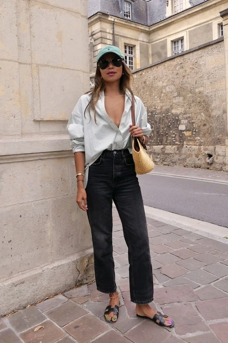 The weekend uniform, reimagined. A classic tee and sneakers keep it comfy and carefree, while the sleek crossbody adds practicality and a baseball cap for that “just rolled out of bed but still look cute” energy.