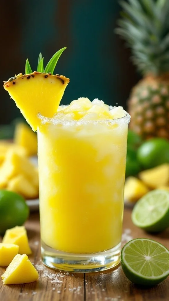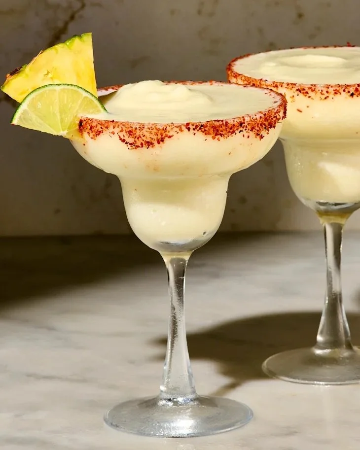 Pineapple strikes again! This one is bold, tangy, and slushy. Perfect for sipping poolside with a salted rim.