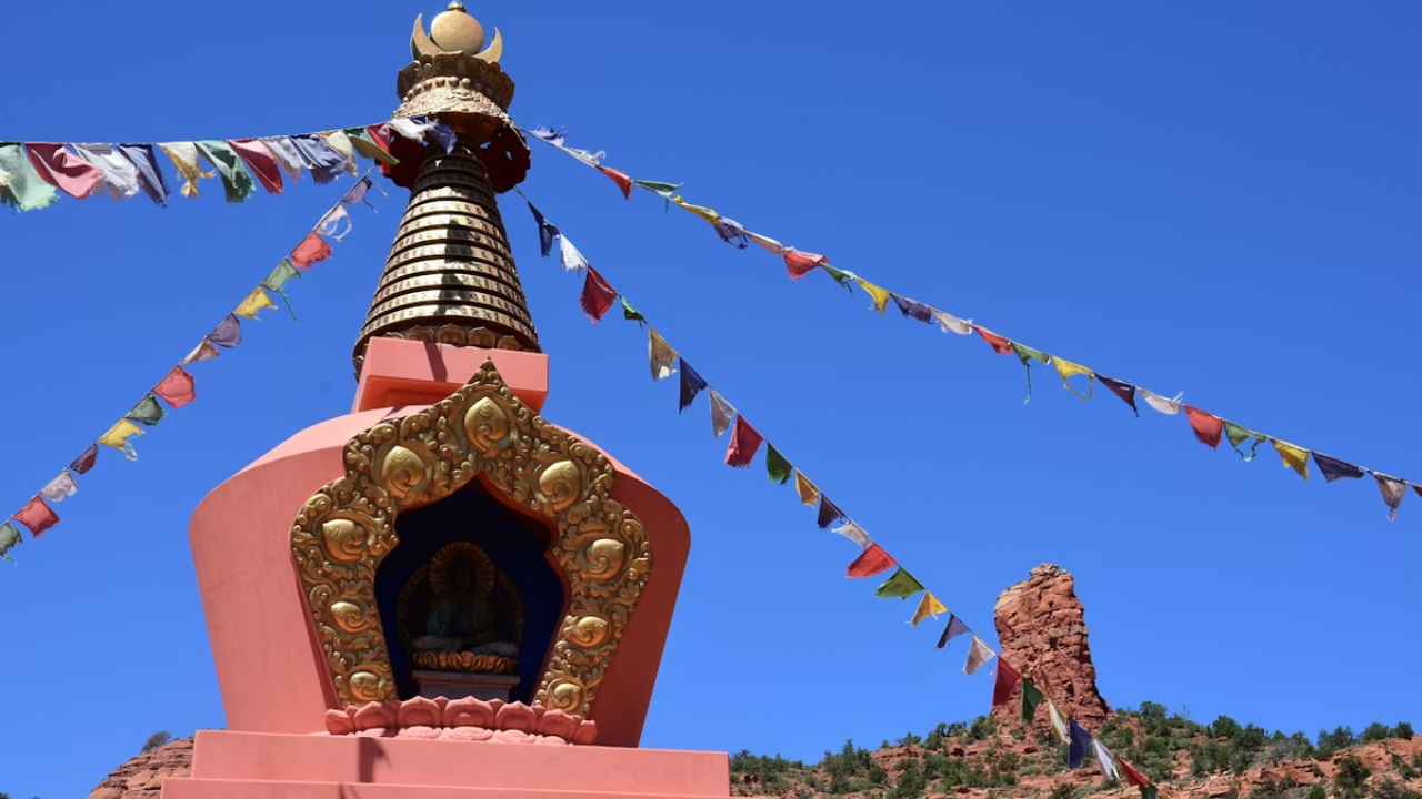 This is one of my favorite spots in Sedona. Set among the trees beneath Chimney Rock and Thunder Mountain, the Amitabha Stupa and Peace Park is one of Sedona’s most spiritually significant sites. Visitors can walk the grounds, spin the prayer wheel, and follow the trails to smaller stupas, including the 6-foot white Tara Stupa honoring the female deity. Along the pathway, there is a mahogany statue of Shakyamuni Buddha and a stone medicine wheel representing the circle of life. The site is believed to connect Tibetan Buddhist prophecy with Hopi traditions and was created by Kunzang Palyul Choling, a Buddhist organization with roots in Tibet, for everyone to enjoy.