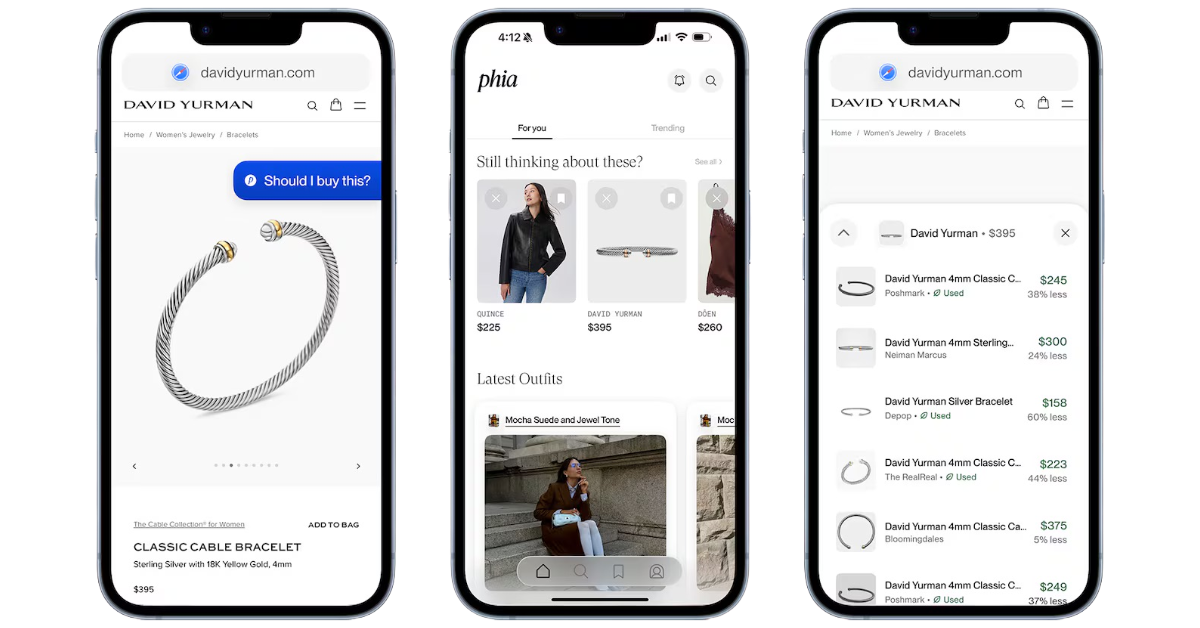 Founded by Phoebe Gates and Sophia Kianni, Phia is the price check your closet has always needed. Phia centers around one simple question we rarely get an honest answer to: Is this actually worth buying? It provides real-time price analysis for new, similar, and secondhand options with just one click. It’s the ultimate personal shopper. Instead of encouraging consumption, Phia promotes shopping as a way to make informed decisions. As the secondhand movement continues to grow, Phia emphasizes the environmental impact of consumer choices. The platform states that buying secondhand can extend a garment’s life by 2.2 years and reduce its carbon, waste, and water footprint by 73%. Phia uses AI to support both sustainability and better spending without requiring users to do extra work.