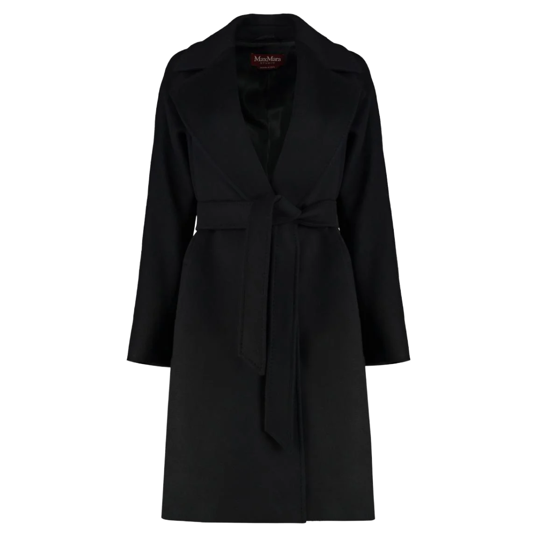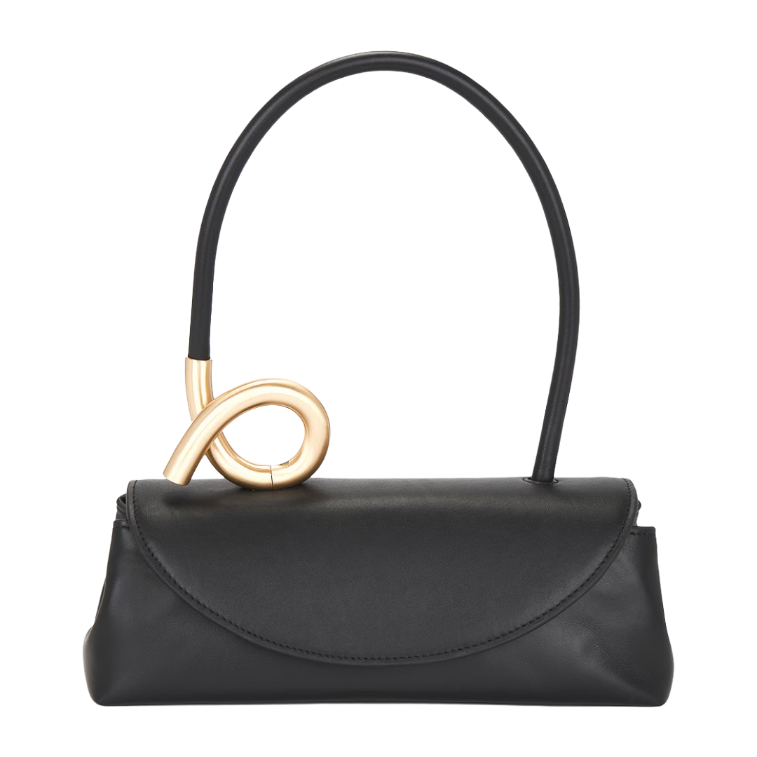 This look is proof that simple pieces can still make a statement. A black cashmere sweater serves as the perfect understated base, letting the architectural midi skirt shine with its fluid shape. Pointed-toe mules add polish while the belt introduces a bit of texture and edge. Finished with hoop earrings and a simple shoulder bag with gold accents, this outfit feels refined, modern, and ideal for days that require being put together without overthinking.