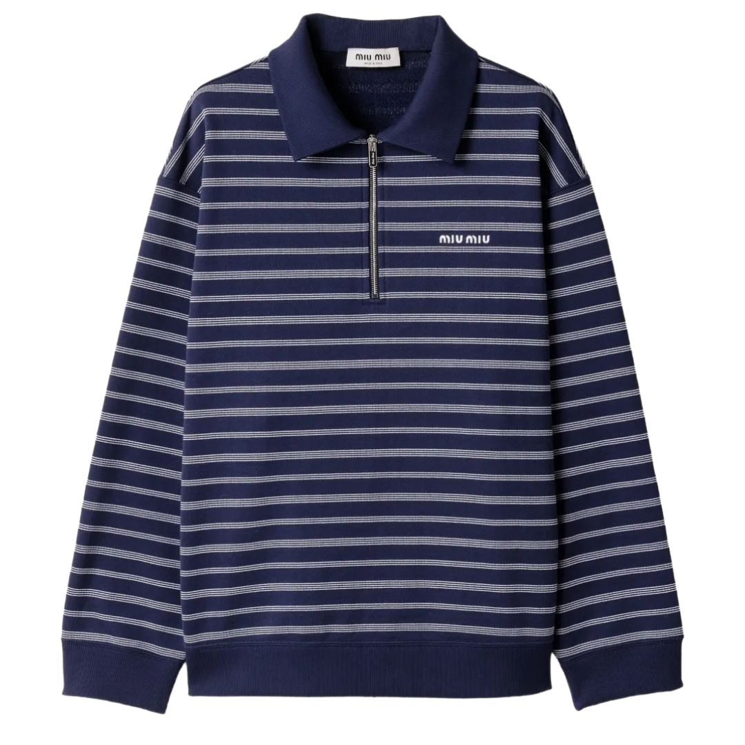 This look mixes classic stables with playful touches. High-rise straight jeans anchor the outfit while the half-zip polo shirt brings the sporty-chic energy that is very now. Red pointed-toe ballet flats and a leather handbag add a bold color moment that is fresh and fun. Another fun use of knee-high stockings that is functional and stylish, and oval sunglasses tie it all together, creating a fashion-forward look that is perfect for days when the outfit can do all the talking.