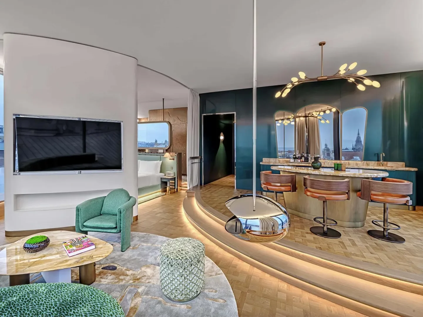 A Bauhaus-inspired cocktail bar, an abandoned church turned swimming pool, a surrealist Milan apartment, and more of my design saves.