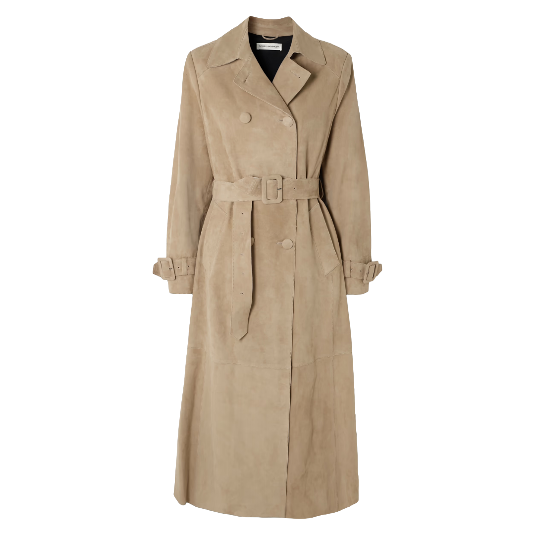 This outfit is pretty effortless. The top keeps things sleek and unfussy, slightly disappearing into an outfit while everything else does the talking. With the stovepipe jeans, itās a solid foundation to layer with a suede coat over the top, and the look starts to snap into focus. The coat is doing a lot here by adding polish, warmth, and a vibe that says, āI have somewhere important to be.ā Finish off the look with kitten heel boots (also currently having a well-deserved moment), a suede tote for an extra hint of texture, and classic signature wayfarers that say youāve been dressing well since before the trend came around. Coffee, errands, last-minute lunch? This outfit has your back.