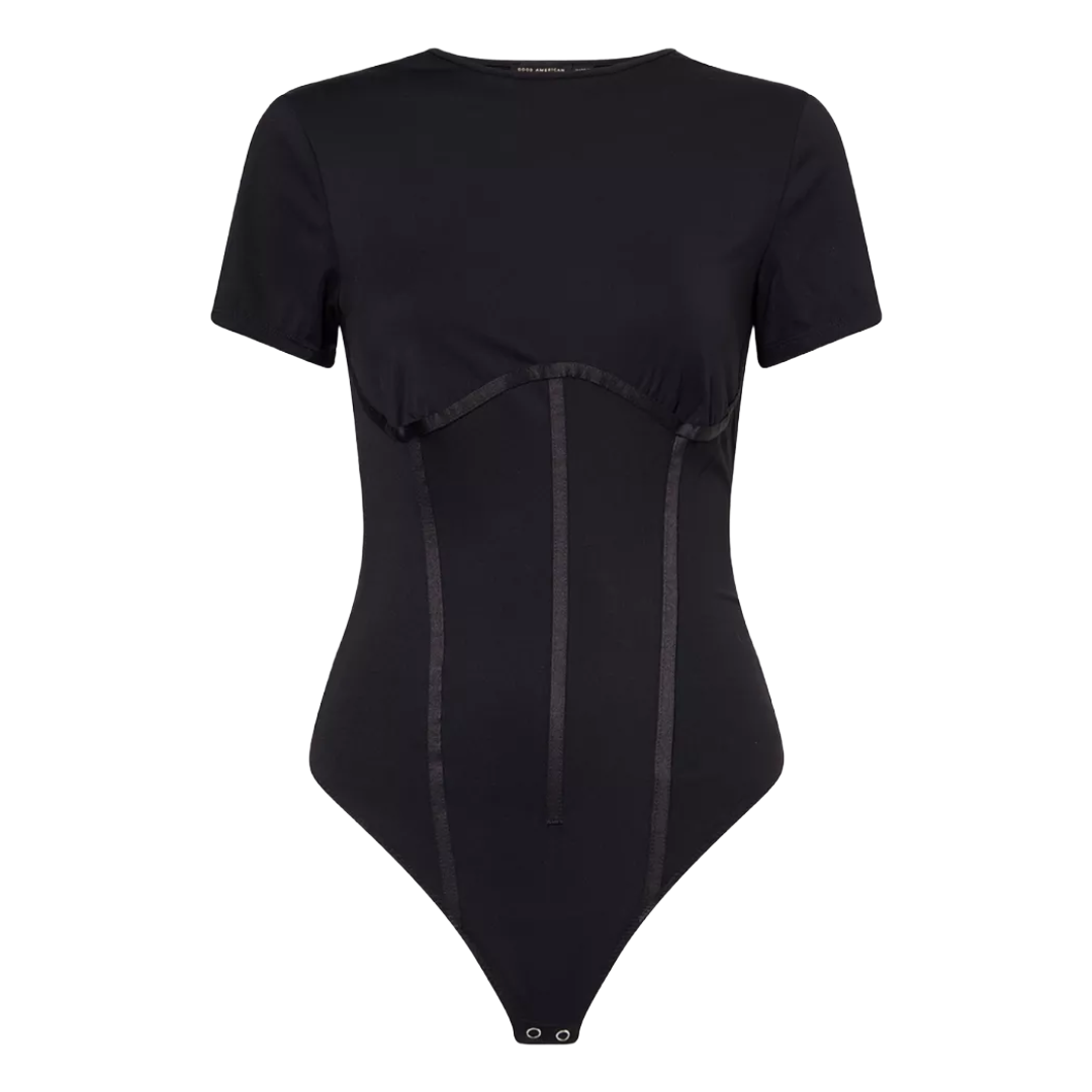 Beyond the technical wins, black just works. If you know me, you know it’s about 85% of my wardrobe. It’s slimming without trying to be. It plays nicely with every color, every print, and every fabric. It’s the piece that quietly makes everything else look better. You know, like the fashion equivalent of good lighting. You don’t really notice it, but you feel it. That said, the key to a good look is choosing the right cut for said look. Not all bodysuits are built the same. A scuba corset bodysuit is going to hit differently than a lace one or off the shoulder style. That’s exactly where things get fun and interesting.