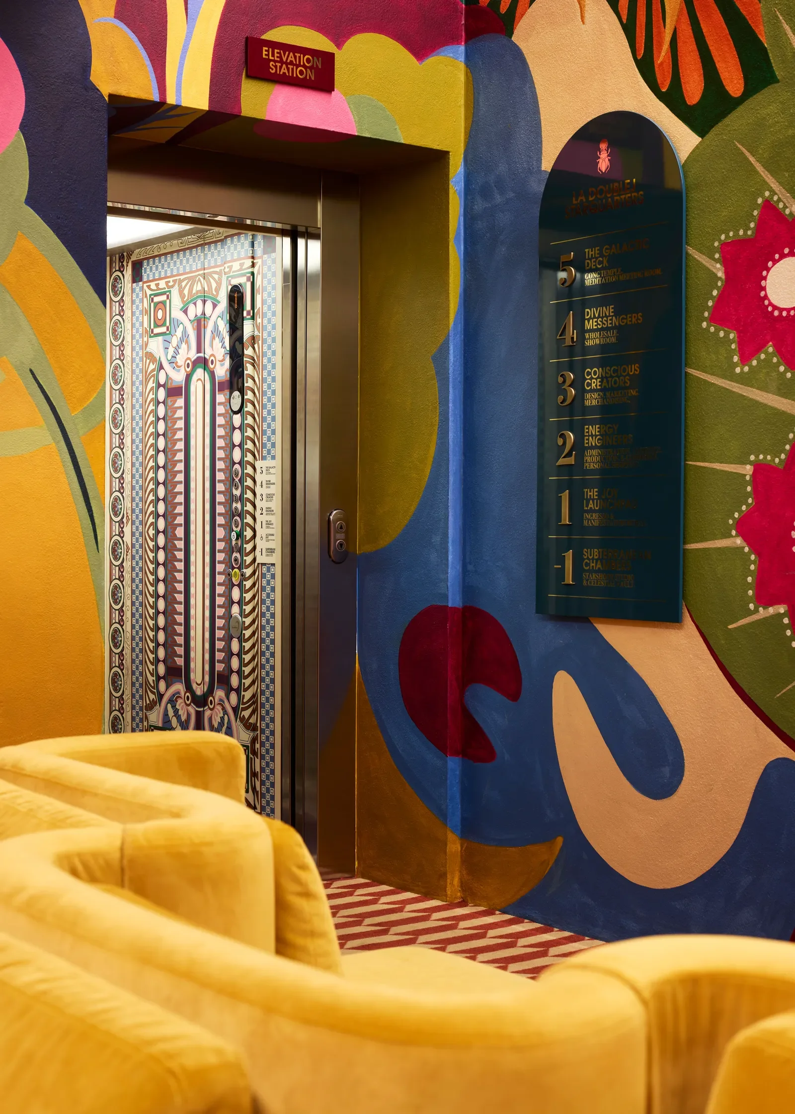 J.J. Martin’s new five-story headquarters, or “starquarters” as they call it, for La DoubleJ in Milan, is fully unhinged in the best way. There’s a 360-degree psychedelic floral mural at the entrance, which took eight days to paint, a rooftop “Galactic Deck” with a meteorite-encrusted gong for sound healing sessions, and floors named things like “Conscious Creators” and “Energy Engineers.” It’s maximalism with a distinct point of view. It’s part office, part wellness hub, part creative fever dream, and still entirely on brand for La DoubleJ. I respect anyone who commits to the bit this hard, and I’d be lying if I said I didn’t want to work here.