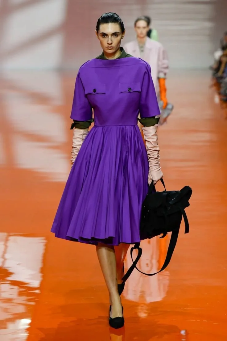 Royal Purple wasn’t really on my spring radar at all. I was really only entertaining other colors and color combinations until a Vogue article stumbled into my feed. The more I looked at it, the more it just started to become the perfect shade of purple. Anyone can do a pastel lilac in spring, but Royal Purple? It should be everywhere, and it just might be now that it’s on the radar. It seems to be having an undeniable moment, and unlike some trends that feel like they just show up uninvited, this color has earned its spot. It showed up across the spring runways in a way that felt intentional and not gimmicky in almost every category. Prada, Balenciaga, and Valentino put it in dresses. Versace went the tailoring route. Hermès leaned into purple accessories, and Chloé folded it into floral so naturally you’d think the shade was part of their DNA. Celine, Ferragamo, and Loewe doubled down on Royal purple for fall/winter, too, which tells you this isn’t going to be a one-season flirtation. Purple is going to be sticking around.